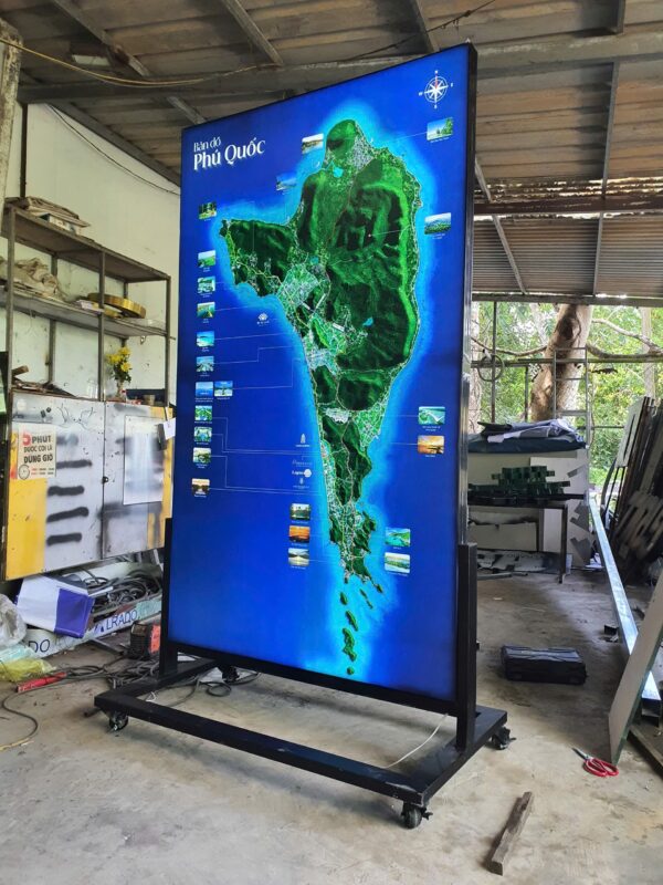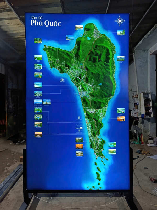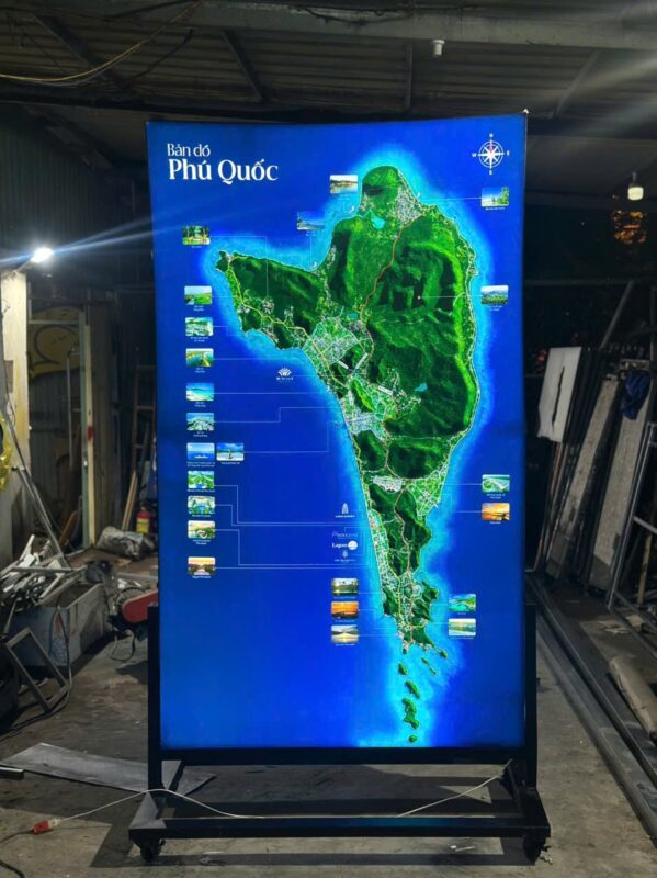 Tại Minh Phong Phú Quốc, tụi mình thi công hộp đèn siêu xịn, ánh sáng đều – viền LED tinh tế – chất liệu bền đẹp, dùng lâu vẫn sáng rực